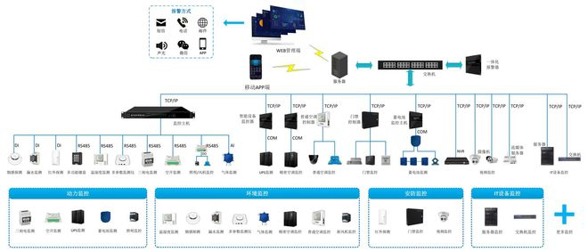 機(jī)房動環(huán)監(jiān)控系統(tǒng),是一套集成化的監(jiān)控解決方案,它通過精密的傳感器網(wǎng)絡(luò)和高性能的數(shù)據(jù)處理平臺,實(shí)現(xiàn)了對機(jī)房環(huán)境的全方位實(shí)時(shí)監(jiān)控。這一系統(tǒng)的主要功能涵蓋了環(huán)境溫濕度的精準(zhǔn)控制、精密空調(diào)的智能調(diào)節(jié)、市電與UPS電源的穩(wěn)定監(jiān)控、煙霧探測器的早期預(yù)警、視頻圖像的安全監(jiān)視、門禁系統(tǒng)的嚴(yán)格管控,以及多種告警方式的靈活應(yīng)用。